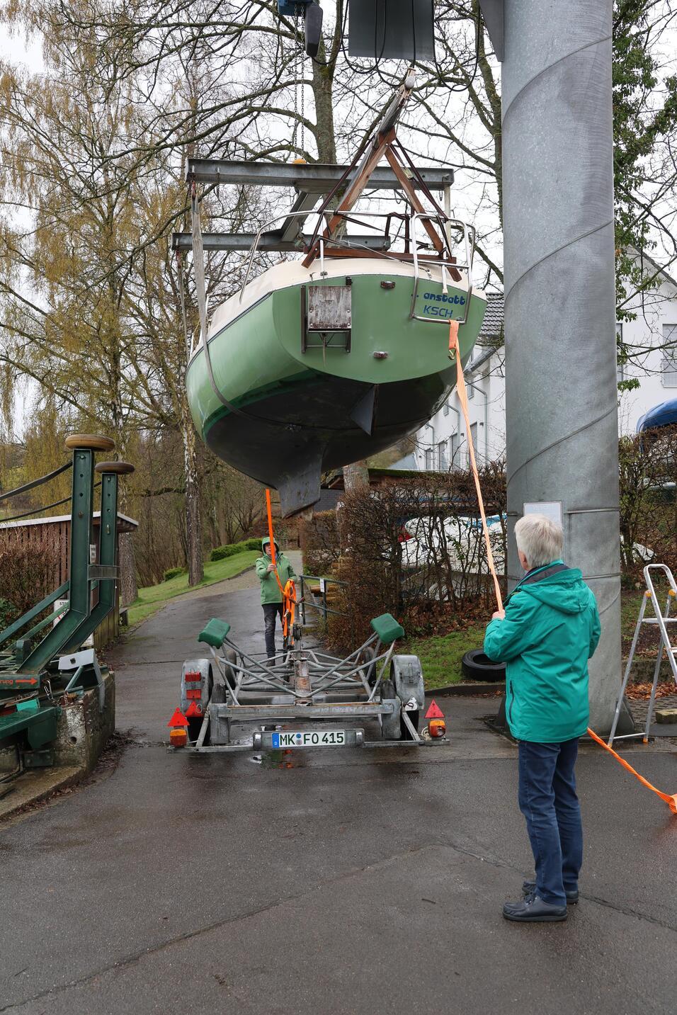 am 28. März 2026 fand bei nasskaltem Wetter eine Slip- und Kraneinweisung statt. Leider hatten sich nur fünf Teilnehmer angemeldet.